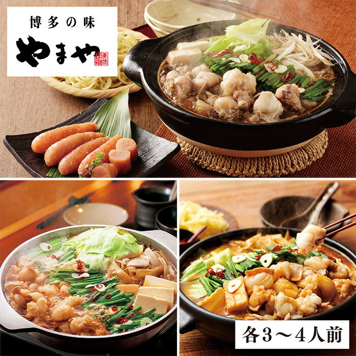 【ふるさと納税】【A4-004】やまや 博多もつ鍋あごだし醤油味3〜4人前 / モツ鍋 ホルモン鍋 ちゃんぽん麺 国産 福岡県 特産